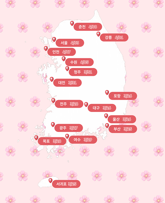 🌸 2026년 벚꽃 개화 지도 도착~!